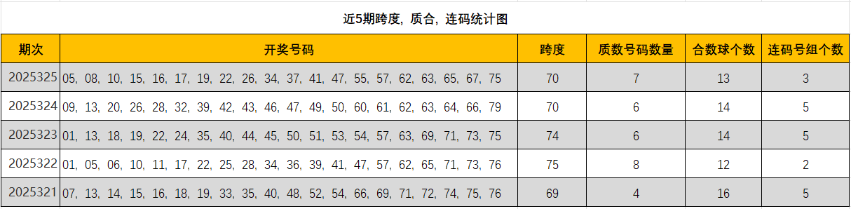 近5期跨度走势:70 → 70 → 74 → 75 → 69