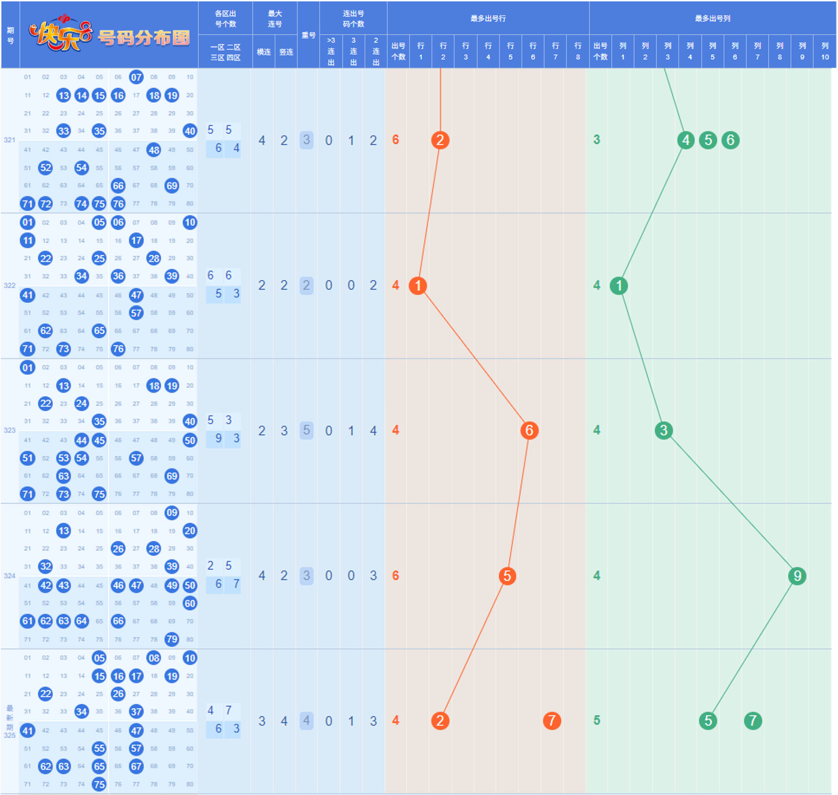 近期走势:连码持续高热。上期(325期)再次开出三连码(15-16-17)及两组双连码。近5期连码组数均值为2.6组,且多次出现三连码形态,热度不减。