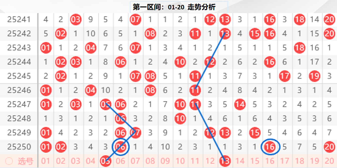 一区分析:【01-20】(走势图标注号码非小黄车大底,请谨慎参考,具体思路将在直播间分享讨论)