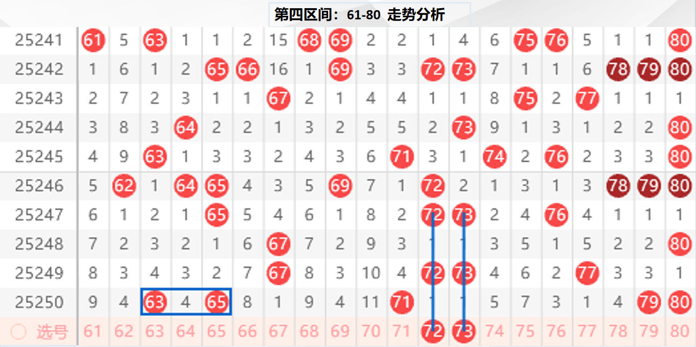 四区分析:【61-80】(走势图标注号码非小黄车大底,请谨慎参考,具体思路将在直播间分享讨论)
