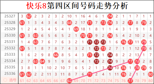 四区上一期是我们主副双胆布局的重点区间,也是成功的开了出来。本期四区再次米娜了断区延续的走势,上一期断区中冷码没有出席那,而四区目前的冷码渐渐增多,必然在近期释放的可能越来越大,所以四区要关注冷码的走势。四区冷码回补需求迫切,尤其64、67、73等沉寂多期号码值得重点关注。结合断区后的反弹规律,本期有望迎来冷号集中释放,可搭配斜连形态如70-71或跳号68形成组合突破。同时留意与三区联动的跨区间重号可能,优选遗漏值高于均值的潜力号,布防冷转热拐点。四区在断区后往往伴随冷码反弹周期,本期需重点防范冷号集中爆发带来的结构性反转,尤其要关注64与73的冷转热契机,把握冷号回补与热号延续的交替节奏,精选64、73搭配70-71斜连组合,兼顾68跳号潜力。注意四区断后反弹强度受限,避免追高过热号码,优选遗漏值偏高且形态稳定的冷码布防,提升复式覆盖效率。