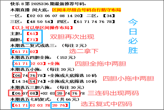 太行老赫快乐8第2025337期走势分析:全新思路有延续
