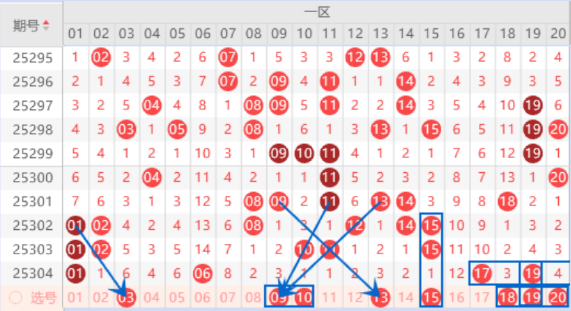 下图为01-20号数字区间走势分析图: