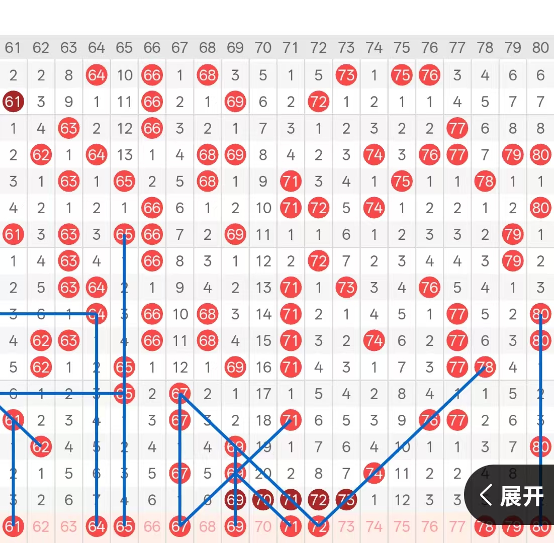 四区:上期四区间开出五码,六字头仅仅开出尾部位置三重的69,以及大遗漏下落的70两码开出,与七字头头部位置三码以五连号的形态开出,六字头头部位置一码没有开出,处于放空状态。七字头则开出头部位置空二回补的71,以及八期遗漏下落的72,与七期遗漏下落的73以连号形态开出,后半部分一码没有开出。本期六字头头部位置关注61-62的下落,其次63-66-68三码做三保一即可,64的七期遗漏也需要重点防守开出。七字头头部位置本期可以关注两期遗漏做重的71下落,其次连号分边号码68-74二选一即可,以及76-77对子空三考虑一码下落,尾部位置则重点防守空二回补的80开出。