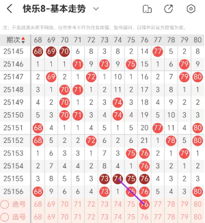 76码,如上图所示,与往期奖号74 75码形成一个斜3连,所以看好。