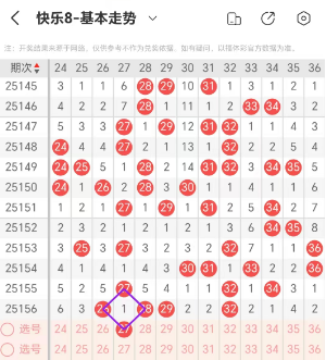 27码,遗漏间隔为1.1.1,形态为豹子号,且如上图所示,与往期奖号26 28码形成一个正方形,所以看好。