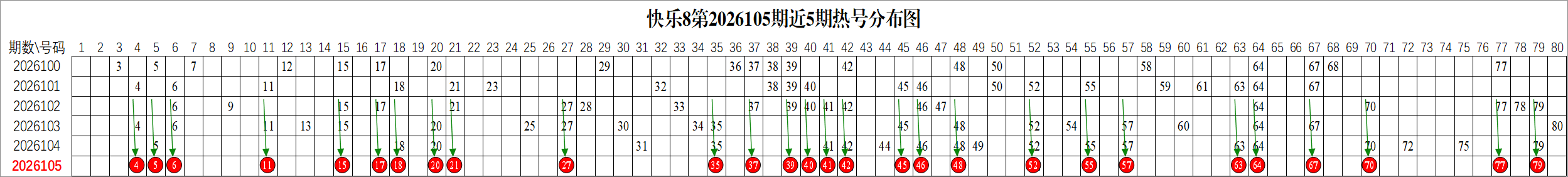 快乐8第2026105期多条件统计分析组号(上期对1组选8中5)