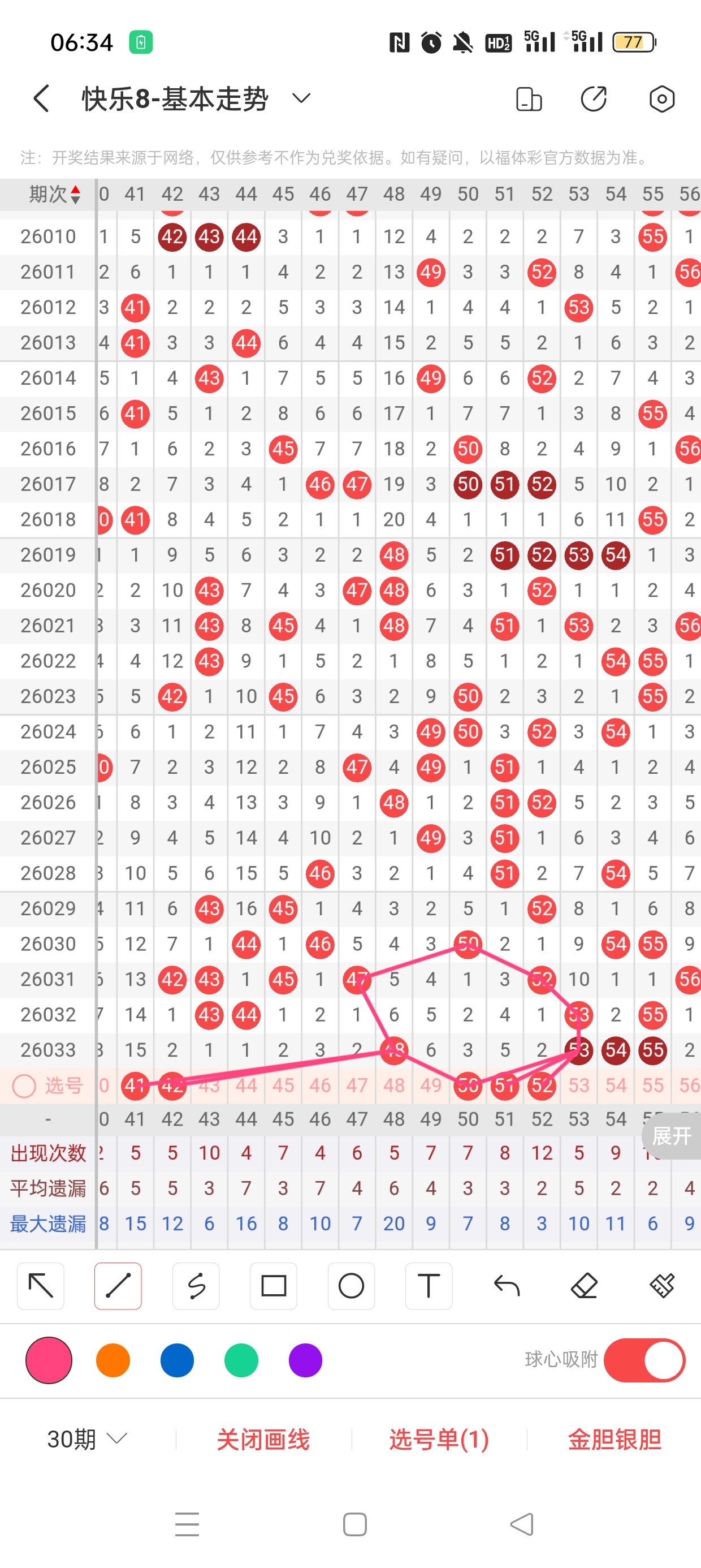 6、分区法:快乐8共分为4个区,一区:1-20,二区:21-40,三区:41-60,四区:61-80。