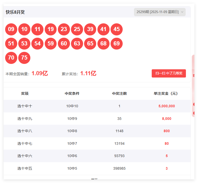 开奖回顾:09 10 11 19 23 25 39 41 45 51 53 54 59 60 63 65 68 69 70 75