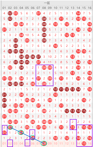 本期一区胆尾5尾4尾,边号5 7 9 11 13 15出一码,重号6 10 12 14 16出一码,上期1开头回补,最近1开头热一期,断一期,本期1开头谨慎选号,重号断2期,本期防重号16,遗漏值隔2期号出多期,本期隔2期号2 5 7 8 11 13 15出一码, 看上图勾画形态上8 15是很合适,15的走势是跟上面8一模一样,遗漏值3 9二出一,算周期3尾本期要回补,3 13二出一,3优先,1开头应该1-2码内,4尾出2期,14不走重4比较合适,本期概率比较大走热,结论关注五码2 3 8 10 15防11,一胆3 双胆3 15