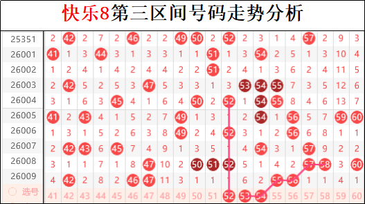 三区上一期走势很鲜明,就是前端下拉上出现隔期回补走势,但是点位上基本很难拿捏。后端上一期连码我们直接拿下,思路来源于近期三四区间交接走势,与尾号走势上显然也有脱不开的关系。本期三区依然有向前的走势动力,所以布局上要注意形态上的转变。尤其是连码首次在三区出现放空的走势,这会不会接下来影响四区连码的趋势也是要注意的。本期三区布局上要注意一点,就是不排除出现偏区的走势,虽然目前三区热度不减,但是周期过长势必会导致趋势中断的可能。建议关注等差数列的出现来回补三区趋势,这里注意两组连码的同形态可能会放空一组的走势出现。