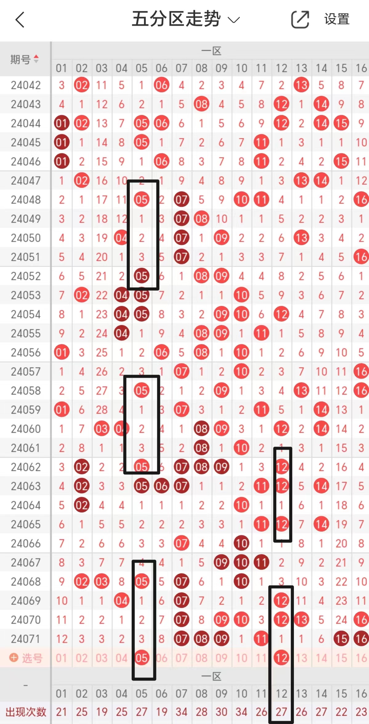 上期共开出7个号码,其中重码3个、斜连码4个。该区间出号近期变化较大,连续二期开出6码以上的情况后容易出现较冷出号的情况,本期重点考虑2个以下出号的情况,从三种号码形态看,本期该区间斜连码和孤码出现的形态俱佳,从纵向遗漏间隔数变化看,本期遗漏间隔数较小号码出现的概率较大。根据号码趋势变化,本期该区间考虑2个号码,关注孤码1个(05号),斜连码1个(12号)。