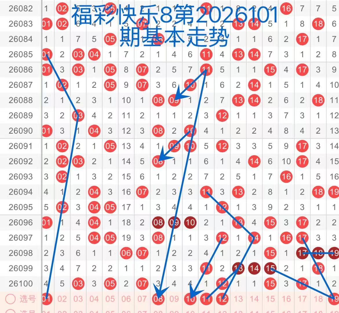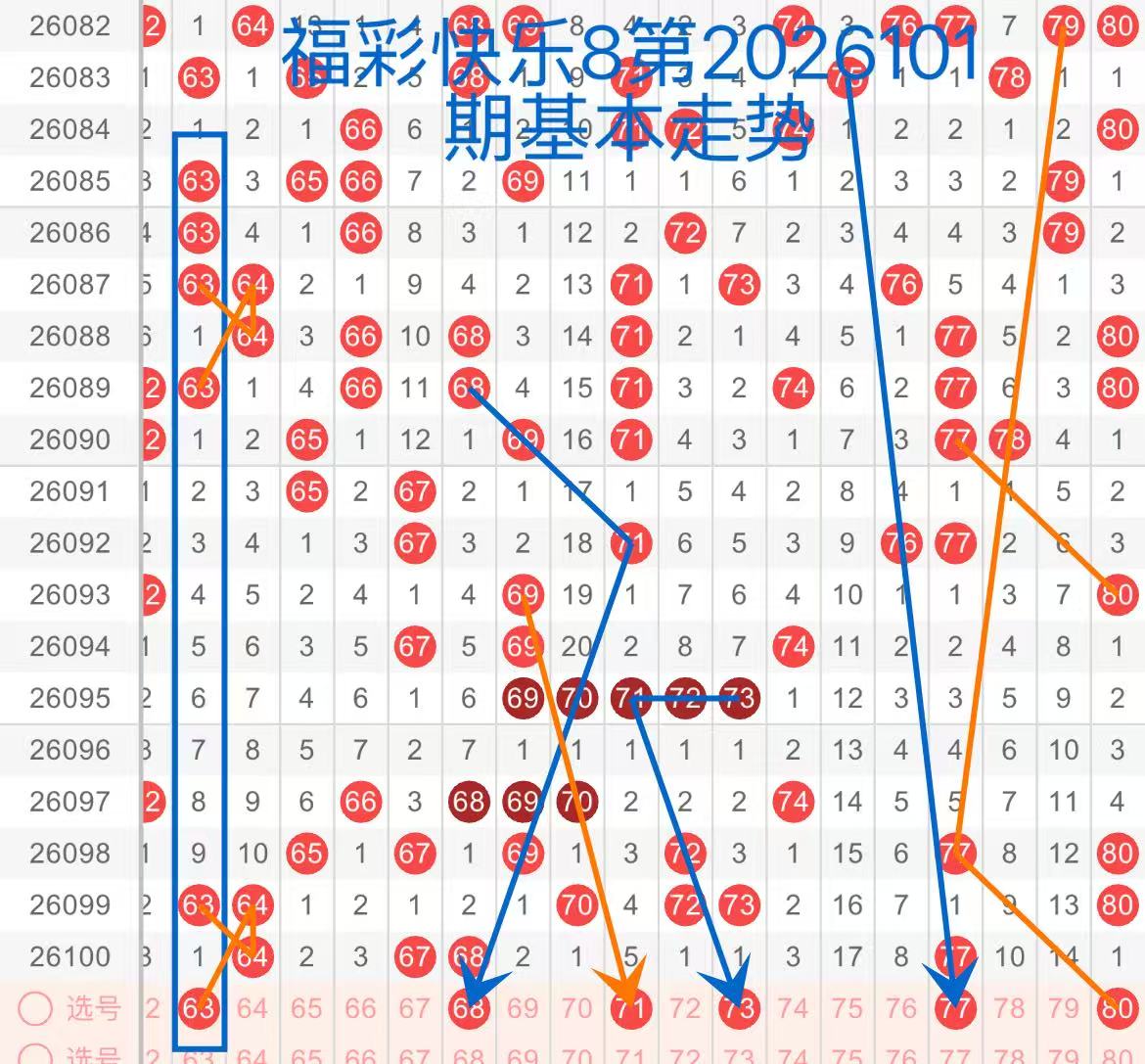 下面是我对2026101期福彩快乐8的分析和预判,希望通过我的分析能让大家今晚大满贯!福彩快乐8上期开奖号码如下图