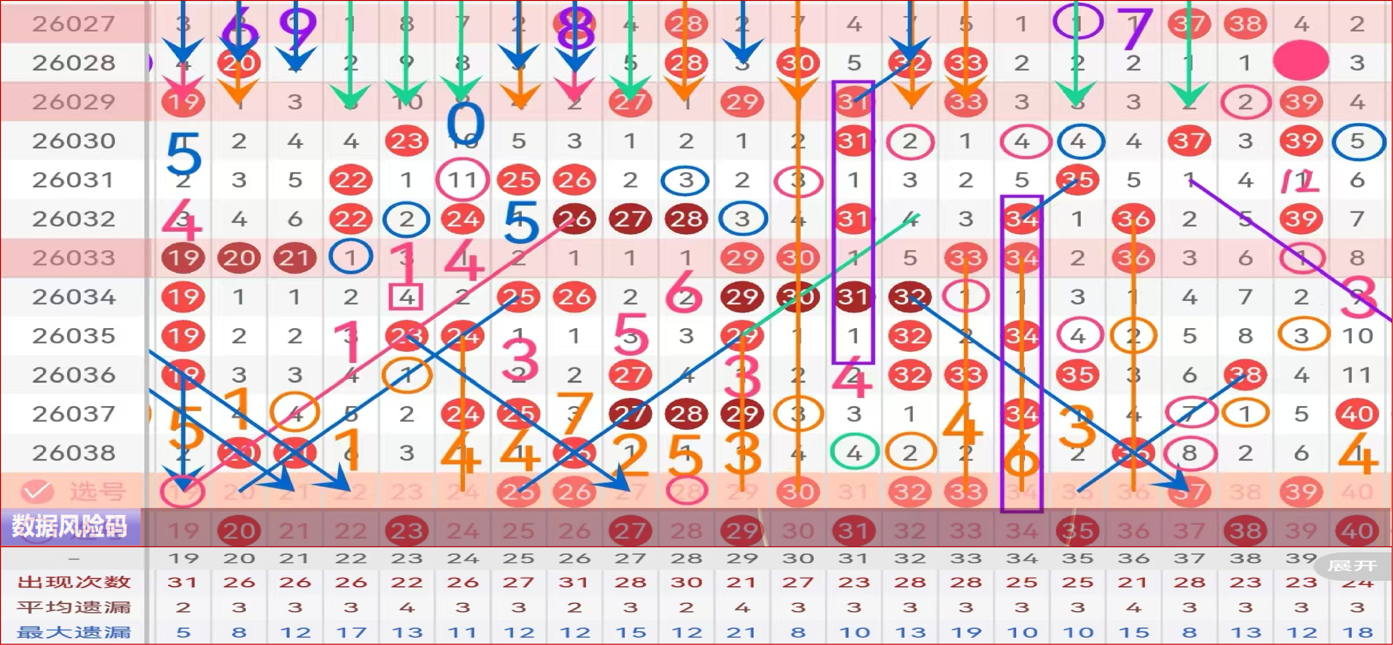 二区间推荐主做号码:25 26 30 32 33 37 39防守号码:22 24 28 36;