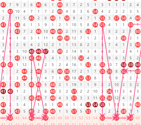 三区分析:【41-60】(走势图标注号码非小黄车大底,请谨慎参考,具体思路