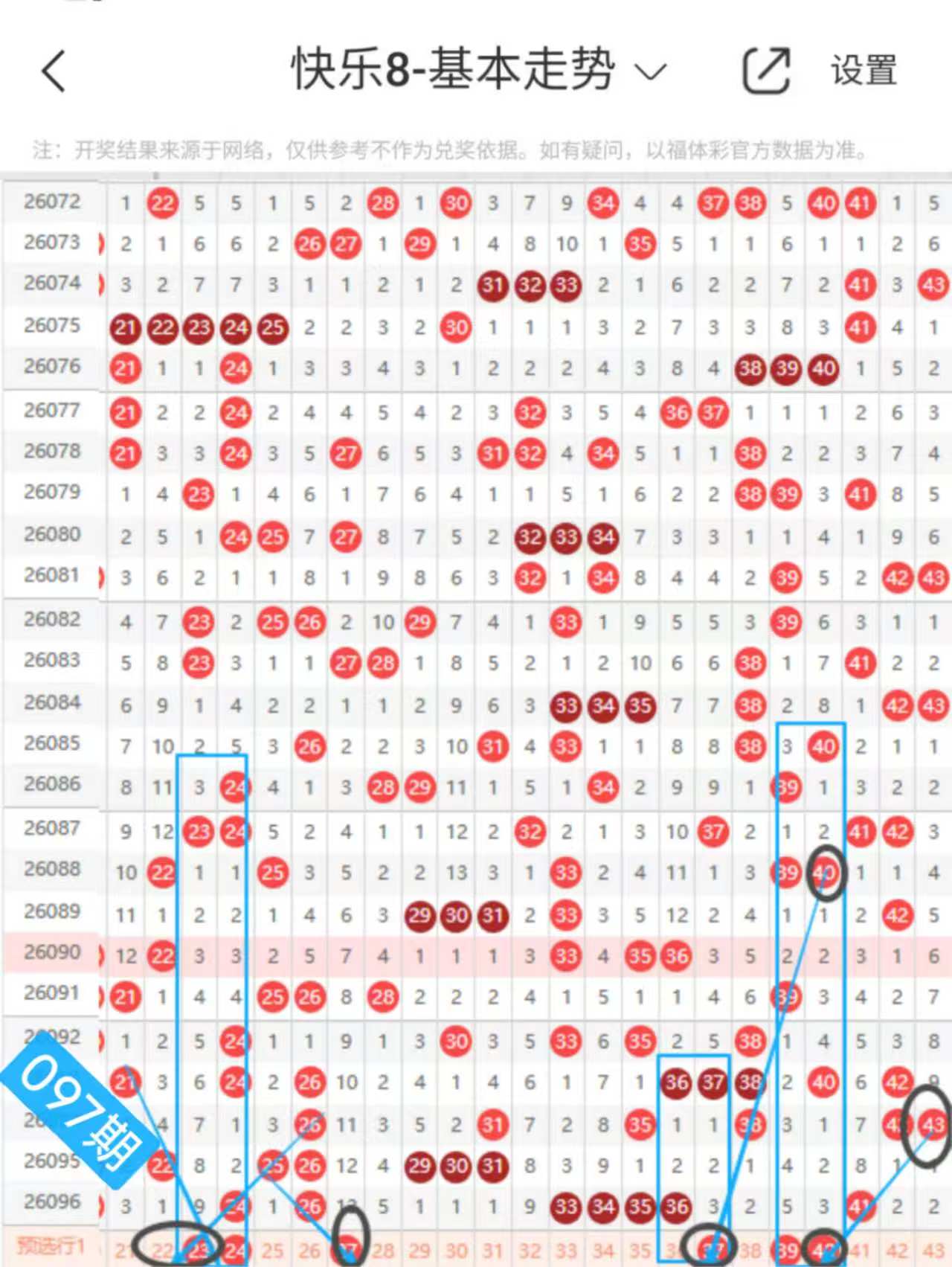 快乐八097期走势分析(本期机会不错+继续冲击全拖大奖)
