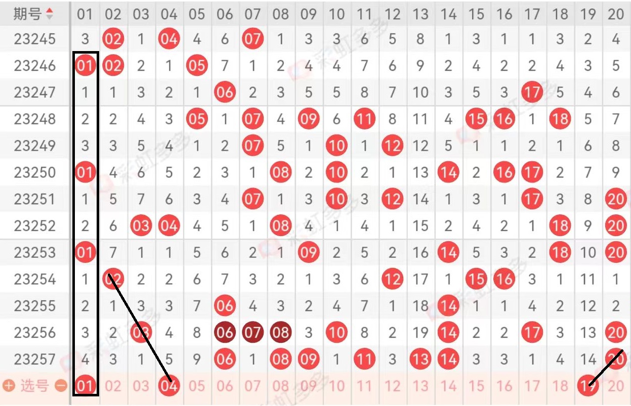 首先我们先来对2023257期当期开奖进行一个简单的复盘,从当期开奖号码来看,当期开出20个号码球,一区开出7个号码球,二区开出4个号码球,三区开出个3号码球,四区开出6个号码球。