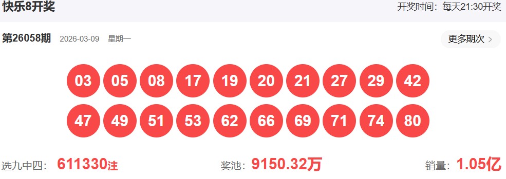快乐8第2026058期开奖号: