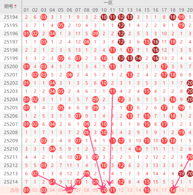 快乐8第2025215期走势分析上期拿下四胆拖守号中三码,七连红