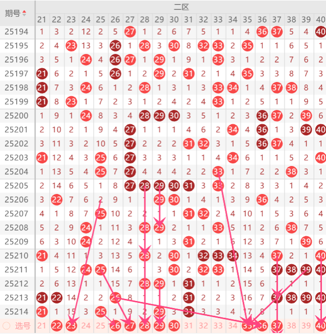二区在近期的走势上分析,整个区间是走热的形态,上期二区间区开出了4码,而且整个区间上期开出的形态是重码和隔期回补走势,那么本期二区间的重码回补上的30.32.33.中开出一码机会,而对称形态上注意28.29.中开出一码机会,至于隔期回补上注意防守26.37.38.40中开出1-2码机会,而遗漏17期的35号中注意防守布局,两期计划,还要注意遗漏15期的23号防守机会,如图所示.