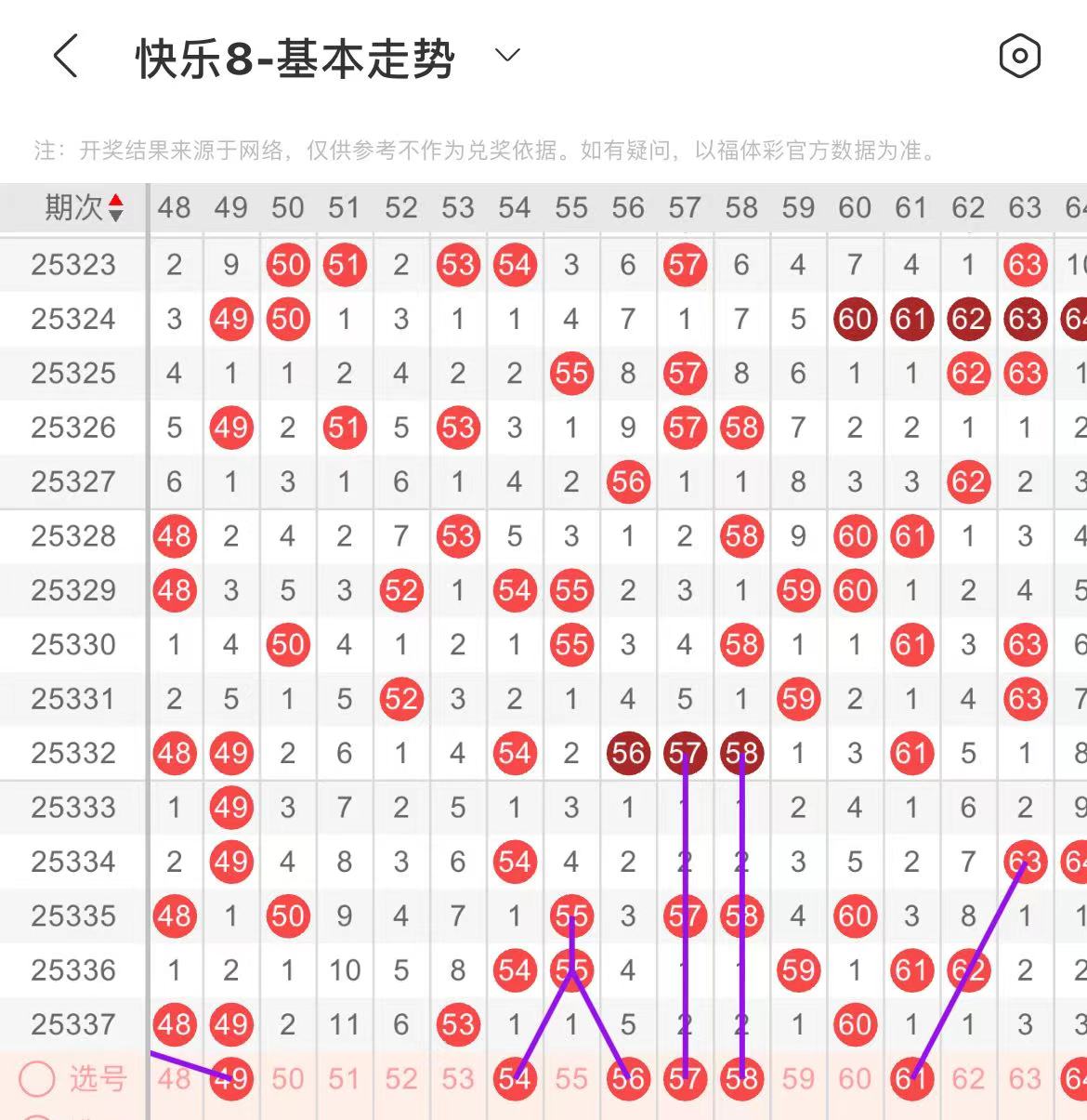 51-60区:本区间上期开出了两个号码,从号码走势图上看,该区现属于温热区,本期注意出号有增加的可能,出号个数在三个号码或者以上,在选号上可考虑多做选择。有出号走势的号码有54.56号,分边出号走势,57.58号,隔期相同同出的走势。