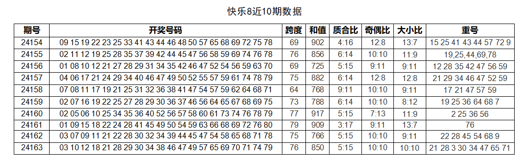 结合以上分析,茯苓子对第24164期快乐8开奖号码精选推荐如下:
