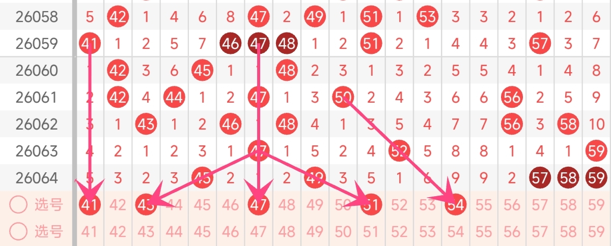 三区的号码走势相对平稳。47号是近期的热门号码。43号在过去的近期内出现了多次,表现十分活跃。考虑到三区号码的稳定性,我们可以继续关注这些热门号码,同时也可以留意一些冷号,如41、54等。冷号在经过长时间的沉寂后,往往会有出号的机会。而且还需注意其他已经连续多期漏出的号码,本期有几率回补综合考虑,本期三区推荐关注号码: 41、43、47、51、54