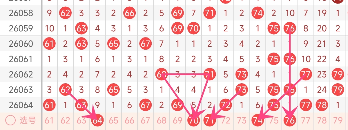 四区号码是最大的号码区间,四区号码的出号波动较大,有时会连续多期不出号,有时又会集中出号。近期,71、76号出现的频率较高。近期内出现了多次。对于四区的选号,我们可以采用冷热结合的策略。除了关注热门号码外,也可以选择一些冷号,如64、74等,增加中奖的机会。  而且还需注意其他已经连续多期漏出的号码,本期有几率回补综合考虑,本期四区推荐关注号码:64、70、71、74、76。