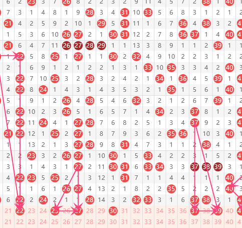 二区分析:【21-40】(走势图标注号码非小黄车大底,请谨慎参考,具体思路将在直播间分享讨论)
