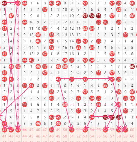 三区分析:【41-60】(走势图标注号码非小黄车大底,请谨慎参考,具体思路将在直播间分享讨论)