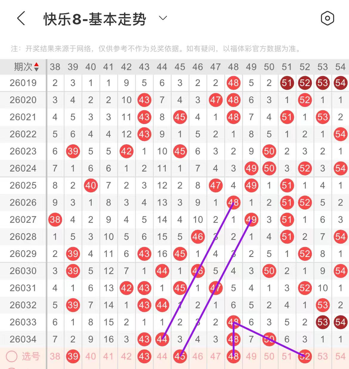 41-50区:本区间上期开出了四个号码,从号码走势图上看,本期出号个数应该还能保持在三个号码左右,有出号走势的号码有45号,平行斜连出号走势,防43.45同出,48号,走三重的可能。