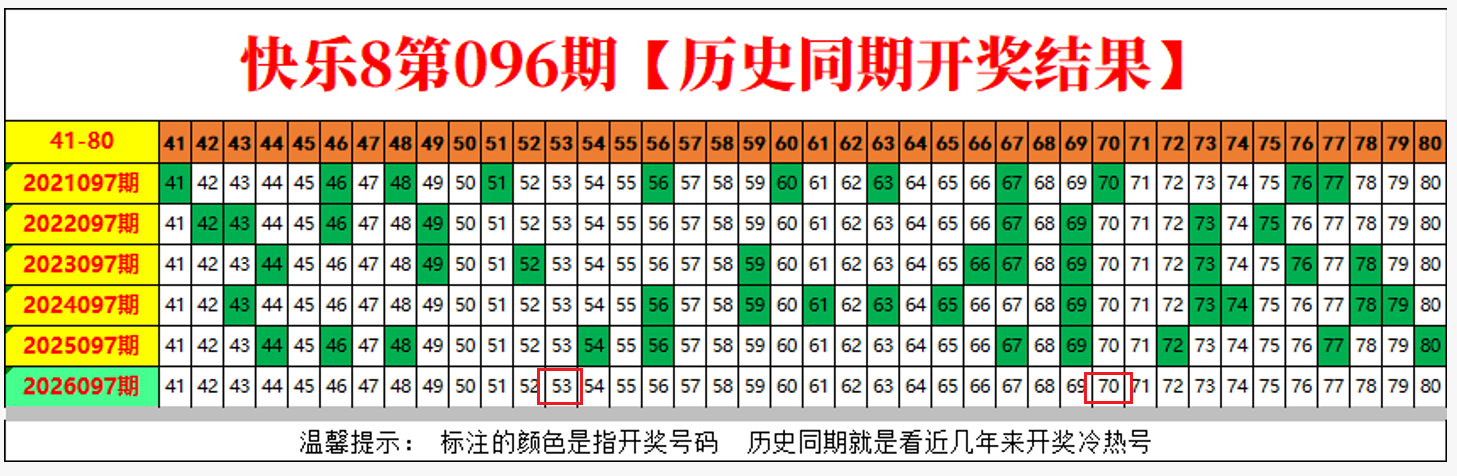 历史同期开奖结果仅做个参考数据即可。以后不会做过多的分析,因为涉及的号码比较多,也无法更细致的体现出来。它不像开奖走势图那样,可以直观的看到,由于开奖期数的限制,所以还是把重心放到常规走势图上。