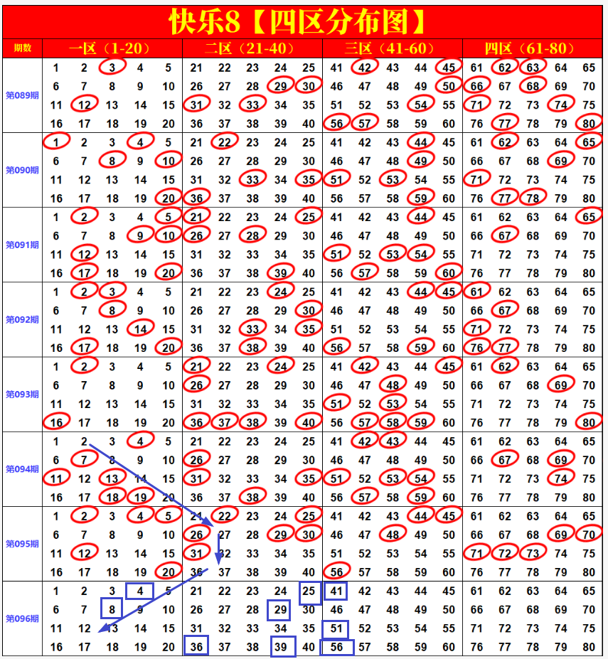 快乐8第26096期尾号、四分区走势分析,上期6中4,感觉越来越棒!
