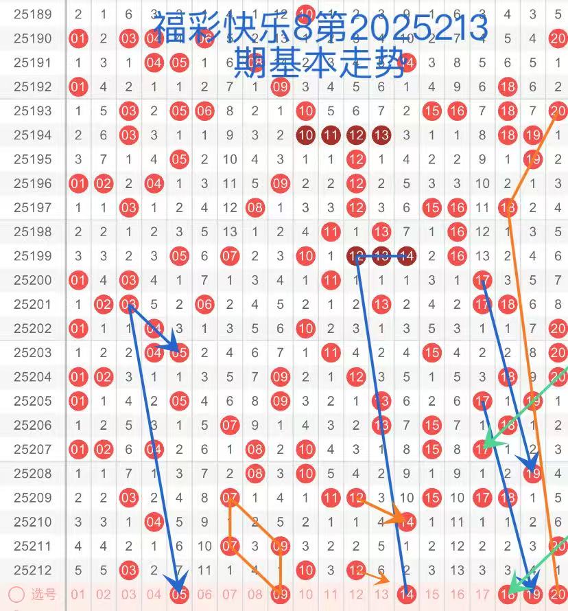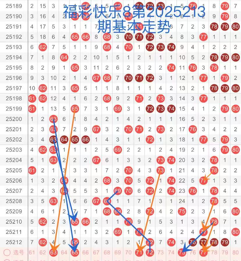 下面是我对2025213期福彩快乐8的分析和预判,希望通过我的分析能让大家今晚大满贯!福彩快乐8上期开奖号码如下图