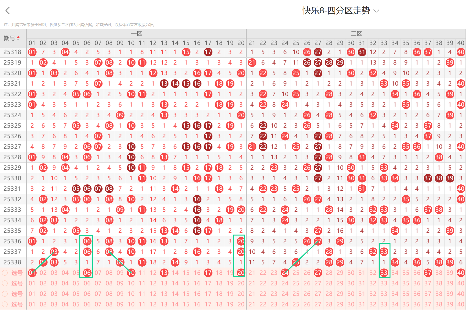 * **相对冷区**:21-24、30-33区域热度相对较低,本期有较强的填补需求,重点关注 **22、23、24、30、31、32、33**。