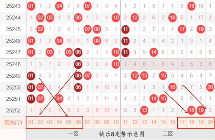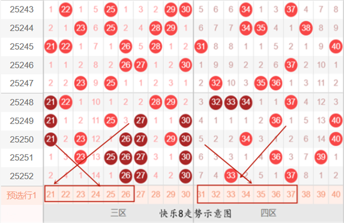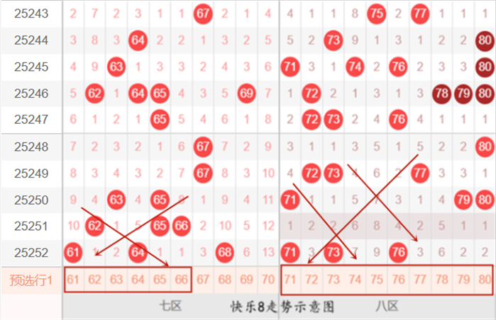 快乐8第25253期:冷热区间判断及号码分布推荐分析