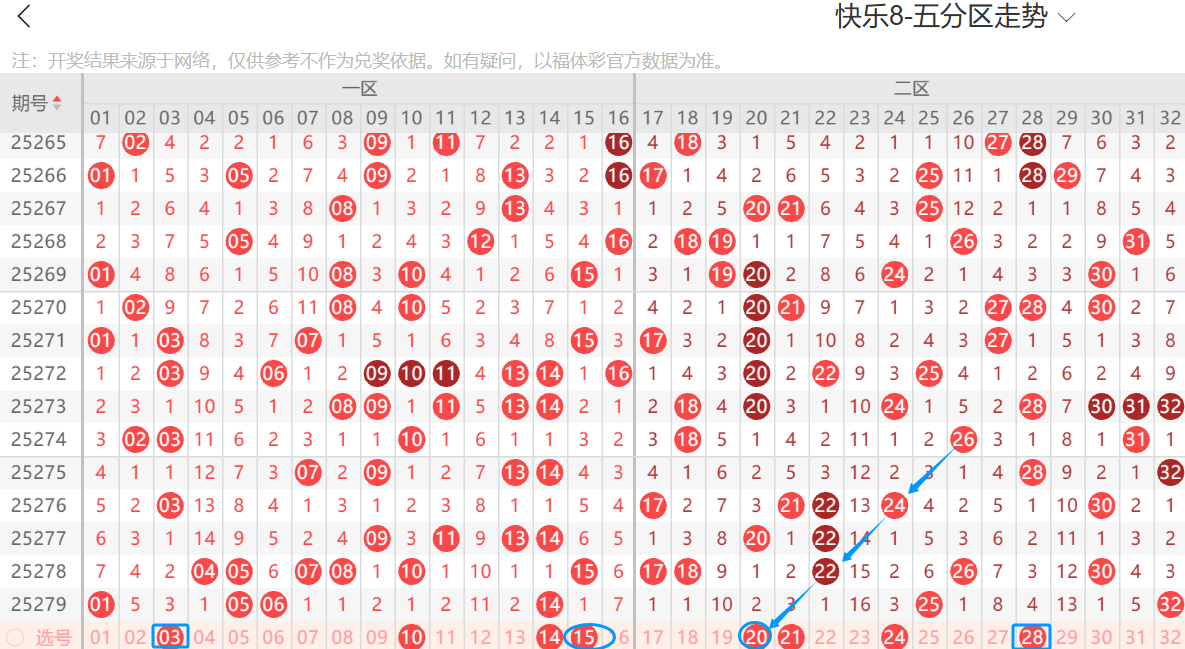 二区定胆20,走势比较好看,看好28出号,另外看20.21可以同出,看24有出号需求,结论三胆20.24.28双胆20.28主胆28.