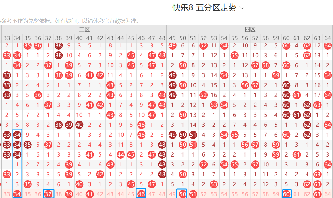 三区看好34回补,看好三区有三跨,所以如果34正确,那么34.37就是双胆,喜欢的直接用,其次关注边号39.41有号出,再就是46这个号仍然喜欢,结论是三区三胆34.37.46,双胆34.37,主胆34,是不是可以直接选二复三34.37.46呢,四区看好0尾出号,即50.60出一胆,锁定60,看好三直落开出63,至于51是可以50.51出连号,如果喜欢50的带上51,结论是四区三胆50.60.63,双胆60.63,主胆63,是不是可以选二复三50.60.63呢,亦或者34.46.60呢,大家思考。