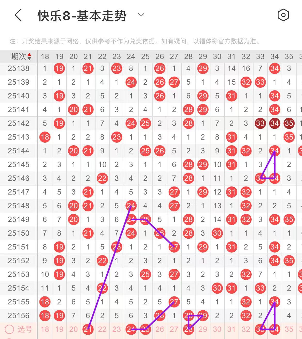 21-30区:本区间上期开出了三个号码,从号码走势图上看,该区号码走势在回暖,本期出号个数有突增的可能,在选号上可考虑多做选择。本期有出号走势的号码有21号,斜连出号走势,24.25号,斜连转直连出号走势,28号,走重形成一个小三角走势形态。
