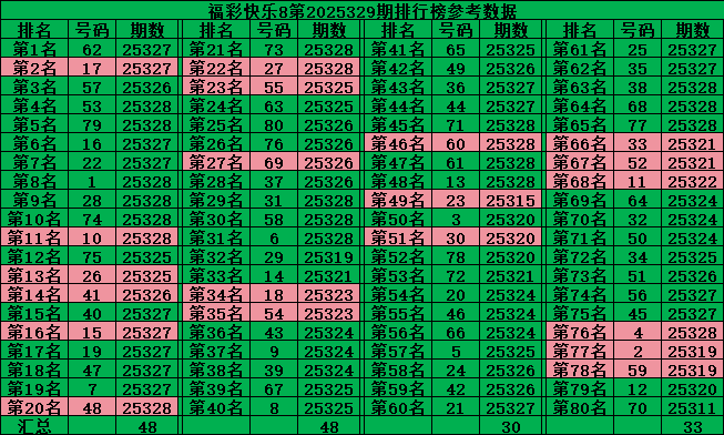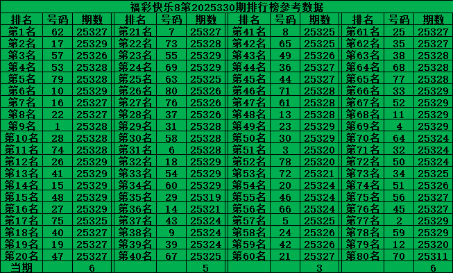 综上所述,福彩快乐8第2025330期推荐号码: