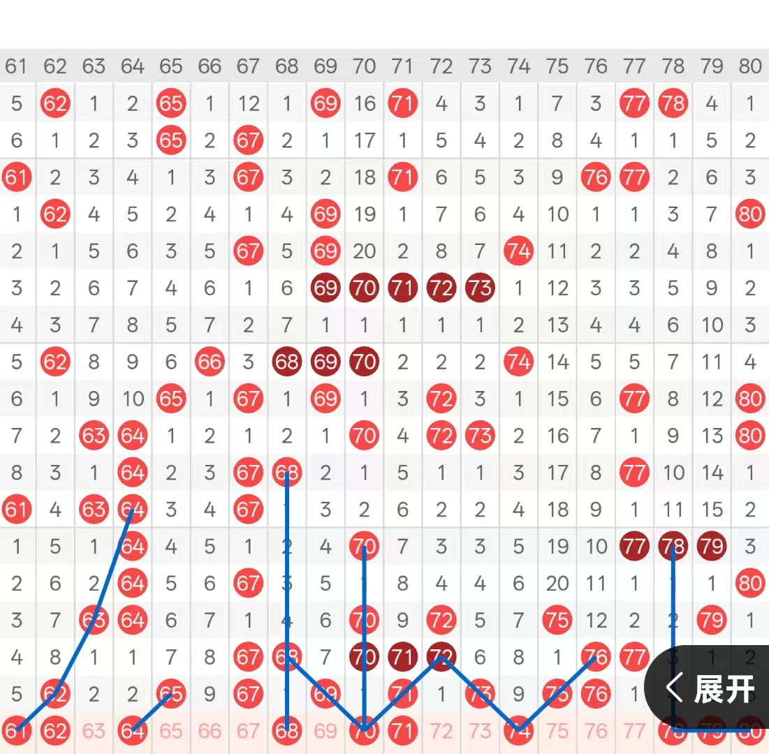 四区:上期四区间开出了8码,六字头头部位置开出了八期遗漏下落的62,以及七期遗漏下落的65,两码以孤马形态开出。尾部位置则开出了空1回补做重的67,以及六十七六十八对子的分边号码七期遗漏下落的69。七字头则开出了九期遗漏下路做重的71,以及72的双重分边号码六期遗漏下落的73,中部位置则开出了大遗漏回补空一下漏的75,与十二期遗漏做重的76以对子形态开出,尾部位置处于放空状态。本期六字头头部位置可关注62的孤码分边6163做2选一即可,其次6265同开,可关注一码的座重,优先考虑62的重码,中部位置65的孤码分边号码6466二选1,且关注尾部位置68-70两码倒三角梅花的开出两码做二选一,自身形态优先考虑70。七字头本期头部位置防守72的梅花开出与70做二选一,其次74的九期遗漏在本期可关注开出与77同为7576对子的分边号码。四期遗漏的78是本期四区间唯一的一码四期遗漏可防守开出,尾部位置7980做二选一即可。