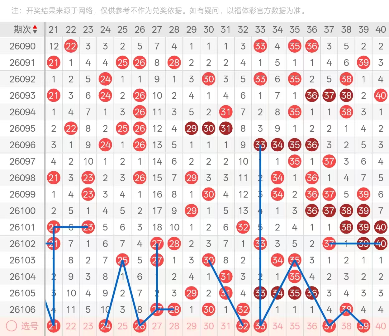 二区:二区间上期开出了6码,二字头尾部位置开出了重空二下落的27与三期遗漏回补的28,以对子形态开出以及空2回补的30,属于31的分边号码,前端部分处于放空状态,一码没有开出,形成了本期的断区。三字头则开出了头部位置连号的分边号码,四期遗漏下落的32,以及尾部位置重空4下落的38,以孤码形态开出,中部位置处于放空状态。本期二字头头部位置可关注21的重空4下落,以及23的孤码五期遗漏回补,可关注开出二十四二十二两码大遗漏号码,均为23的孤码分边,可关注一码开出,做二选一即可。尾部位置二十七二十八对子的分边号码,优先考虑26的八期遗漏回补,其次重控2下落的27分边号码可关注2628做二选一。三字头头部位置本期可防守32的四期遗漏漏座重,以及33343536的连号空一回补做一码即可,38的孤码本期可关注分边号码3739做二选一即可,40的四期遗漏回补与三十九三十七三码可考虑一码开出。