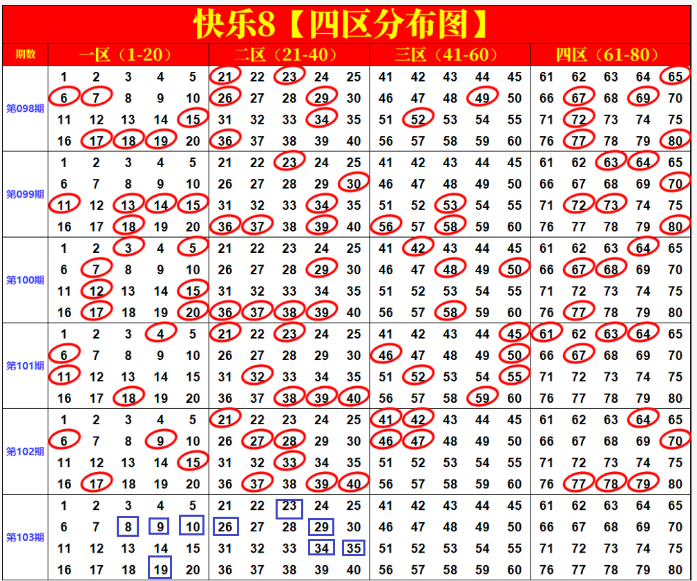 快乐8第26103期尾号、四分区走势分析,免费内容还不来瞧瞧?
