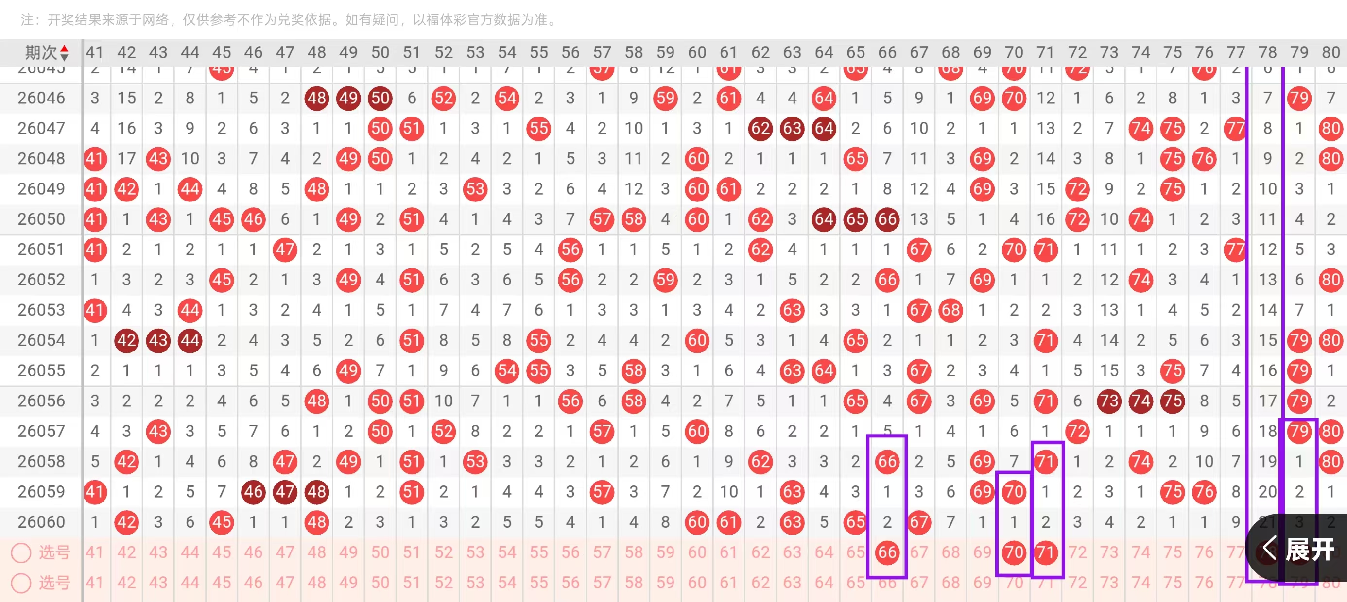 三区41-60:三区间,上一期回补了4个号码的下落,从近期三区间号码下落点位来看,呈现出了由热转冷的形态,今天我们要重点关注的是三区间空缺位置的下落和对子下面的回补,在四头首先我们要重点关注的是梅花形态41-43的一个下落点位,和对子空1-46-47的一个回补点位,今天这里可用41-47和43-46的一个搭配回补回到五头位置,这里要重点关注的是梅花控3-50-52的一个回补点位,和57-58的一个下落点位,今天这里可用50-58的搭配和52-57的搭配回补,这里要重点防的是57-58开出对子下落的可能。