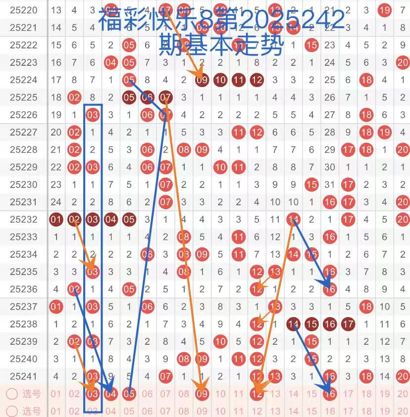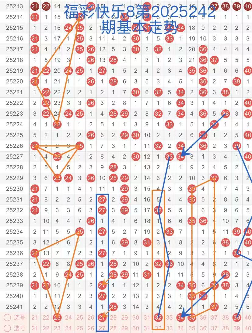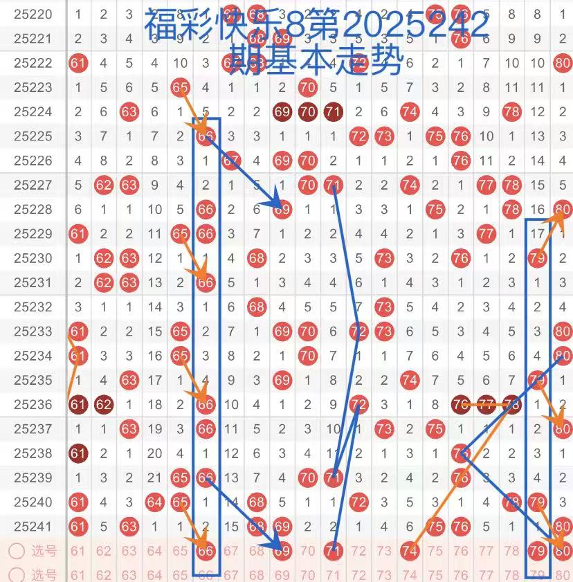 下面是我对2025242期福彩快乐8的分析和预判,希望通过我的分析能让大家今晚大满贯!福彩快乐8上期开奖号码如下图