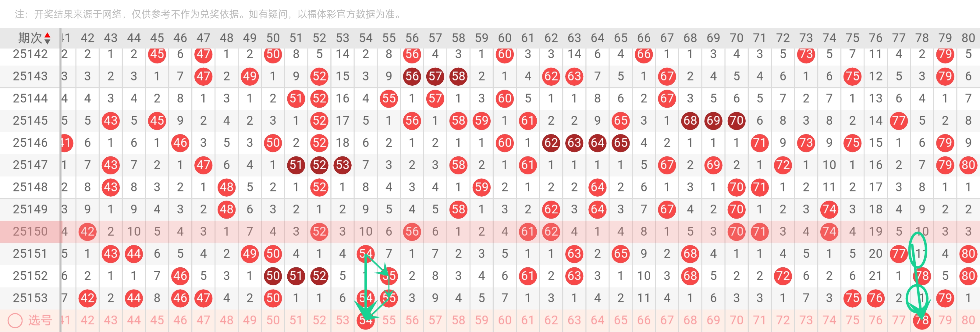 - 尾数周期:尾数8近20期热度第2(14次),78作为最大尾8号,在热尾周期中末段爆发力极强。