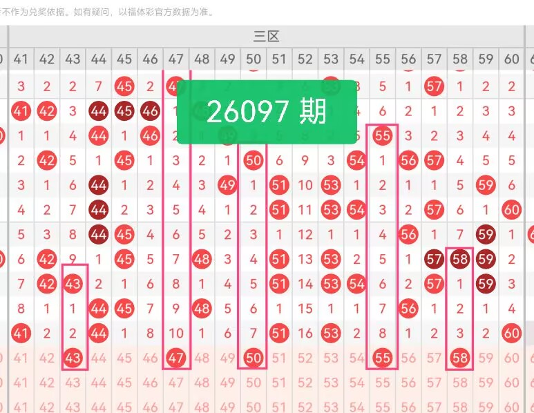 上期第三区间开奖个5号码,本期可能会稳定开出。43为奇号,近30期仅落号5次,冷态积累下回补概率较高;47是温号,形态均衡,近30期落号4次,回补性较高;50为偶号,填补该区偶号热度不足的问题,近30期落号9次,稳定性较强;55是该区热号,近30期落号5次,持续性突出,是三区核心发力号;58为温号,近期遗漏3期,本期考虑该号码会在本期开出。