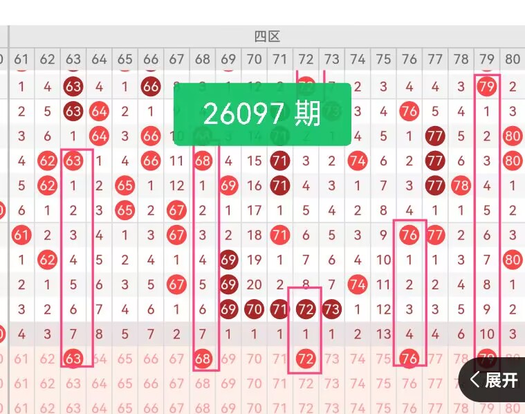 上期第四区间开奖0个号码,本期可能会增加开出。63为冷号转温号,近30期仅落号7次,断区后回补概率较高,是四区回补核心;68为偶号,填补该区上期无偶号的空缺,近30期落号7次,稳定性强;72是温号,形态均衡,目前遗漏1期,走势平稳;76是该区热号,近30期落号4次,持续性突出,支撑四区回补热度;79为奇号,平衡该区奇偶结构,近期遗漏10期有余,由余上期该区间美亚任何号码开出,号码79在该区间遗漏次数最大,本期考虑该号码会回补开出。