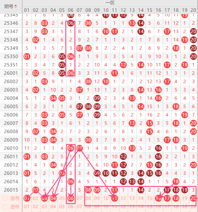 一区间打底号是02.03.04.06.16.17.18.20中参考2-3码开出机会,
