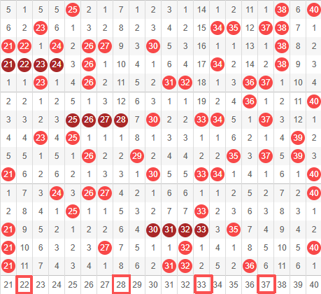 本期二区推荐号为:22,28,33,37。其中30.31.32.33前几期开出四连号,32连续开出三直连,推荐本期邻号33捡漏。37在15期内也出现4次,已近6期未开出,上期相邻号码36开出,本期推荐37。22和28都是二区冷号,备选即可。